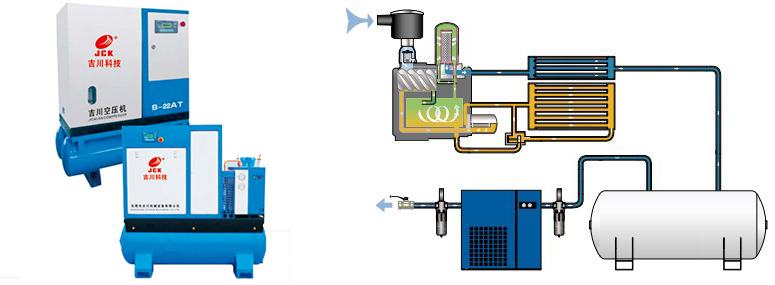 現(xiàn)場(chǎng)型螺桿空氣壓縮機(jī)是將螺桿空壓機(jī)、冷凍干燥機(jī)、精密過(guò)濾器、儲(chǔ)氣罐等部件集成于一體。用戶安裝方便,使用簡(jiǎn)單,移動(dòng)靈活??諝饨?jīng)集成系統(tǒng)后,空氣質(zhì)量明顯優(yōu)化,可滿足各企業(yè)的工藝過(guò)程需要。美觀的外型、可靠的性能,經(jīng)濟(jì)性優(yōu)越,是我公司重點(diǎn)出口的螺桿系列空壓機(jī)產(chǎn)品之一。
